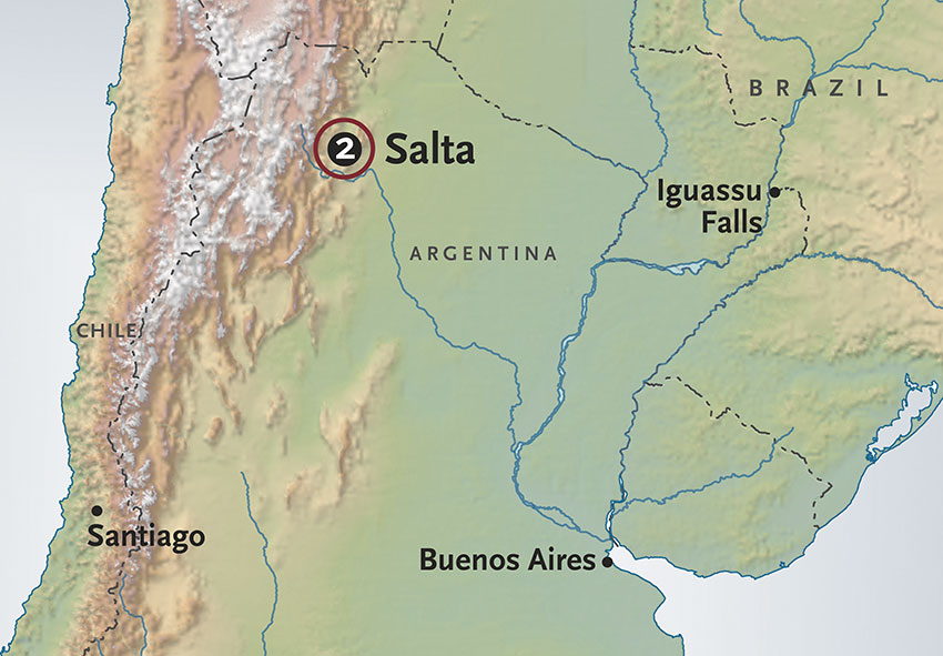 Continue your scenic drive to Cafayate, a charming town surrounded by vineyards in the foothills of the mighty Andes range. Sample the region’s esteemed vintages including fruity Torrontes wine and visit the bustling town market, a great place to shop for local arts and crafts. This evening, you’ll spend the night at the Patios de Cafayate Hotel & Spa. Situated on a vineyard estate, our enchanting hotel is stylishly furnished and decorated with traditional antiques and artisan carpets. Meals B+ L.